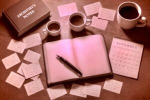 Now that December has settled in and put its cold nose against the windowpanes, it is finally possible to look back at November with the proper mixture of satisfaction, disbelief, and a strong desire to reorganize the stationery cupboard. What began on October 31st as the ceremonial reopening of the Saint Clare gates for #AdAstraWriMo became, by month’s end, a surprisingly architectural endeavour: walls rebuilt, floors relaid, entire wings reconnected.