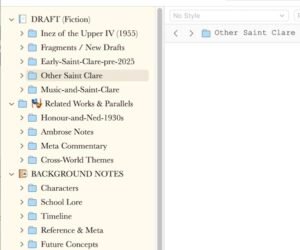 This November began with a plan that, in hindsight, displayed an admirable optimism and a truly reckless ignorance of scale: I intended to move the entirety of my Saint Clare writing into Scrivener, that elegant, beguiling piece of software whose beauty has lured me back again and again like a siren calling from a very aesthetically pleasing rock.