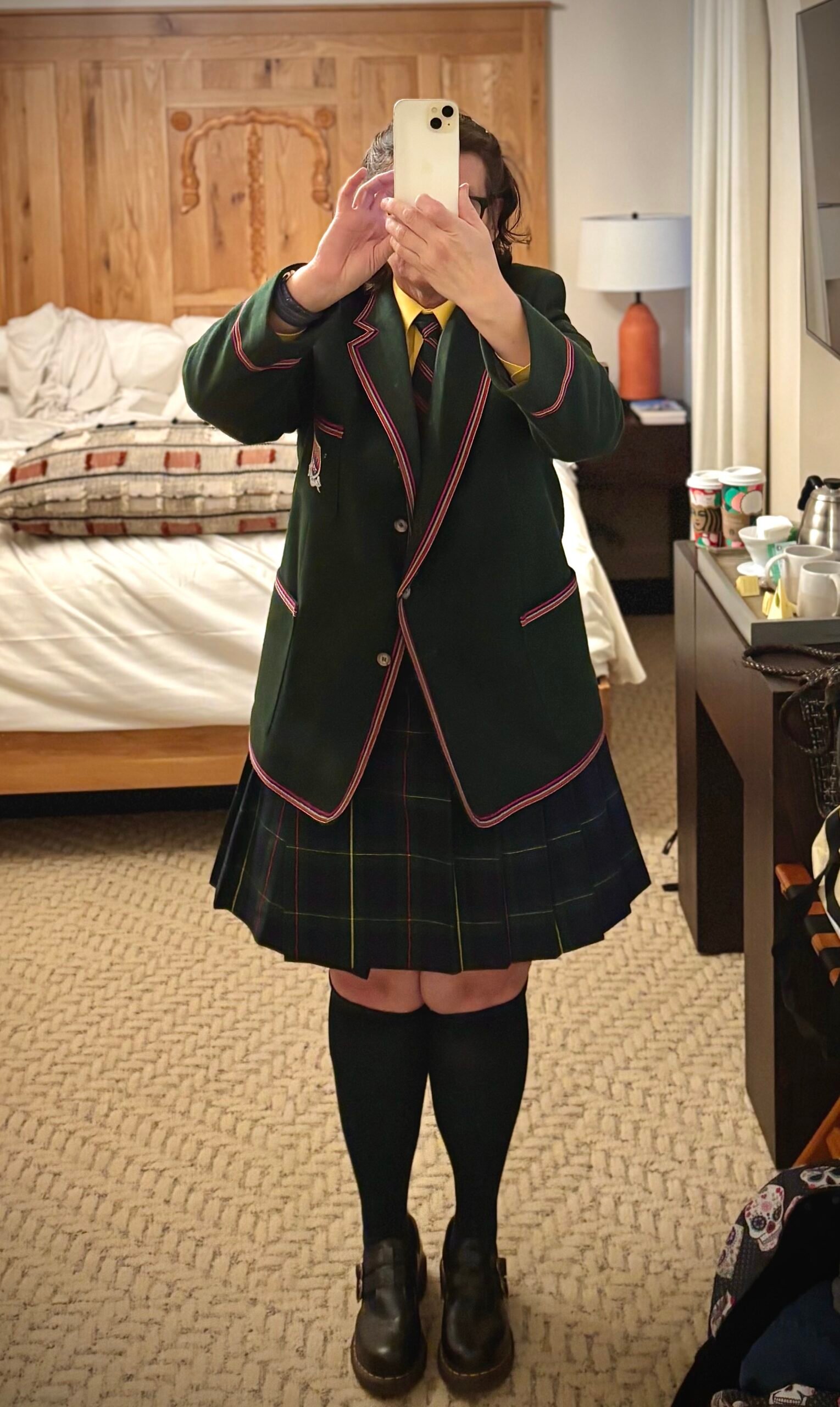 If you follow me on Twitter or Bluesky, you may have noticed that for several months, I’ve been posting (terrible) selfies wearing school uniforms, sometimes remembering to tag them with what I thought was my own made-up hashtag, #dailyuniform.2But of course, others use it for other stuff, too. Why? Well, frankly, I’ve been in the spanking scene since 1997. Even allowing for ones I’ve given away as my size changed, I’ve got A LOT of uniforms. Why not enjoy them?3Like spanking, uniform kink is a habit for me. The more I do it, the more I think about it, the more I want to indulge. And on and on.